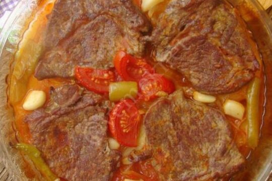 Fırında Salçalı Et Yemeği Yapılışı : 4 parça bifteği orta boy bir kap içine alın. Üzerlerine 1 çay bardağı kadar zeytinyağı ve az miktar tuz ekleyip, eliniz ile harmanlayın. Bu...