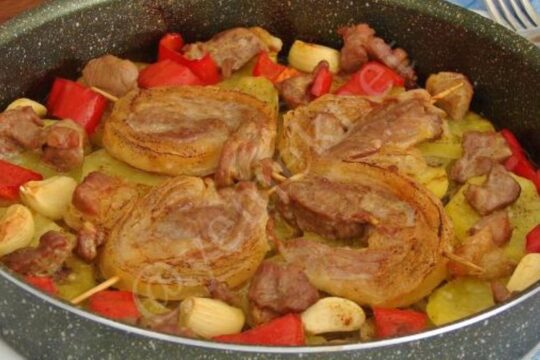 Fırında Sebzeli Et Yemeği Yapılışı : Fırında sebzeli et yemeği yapımı için öncelikle yarım kilo kuzu etini kuşbaşı olacak şekilde doğrayın. Diğer tarafta 2 adet kırmızı kapya biber ve 5...