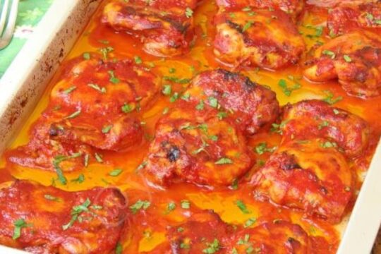 Fırında Salçalı Tavuk Yapılışı : Fırında salçalı tavuk yapımı için; ilk olarak geniş bir kap içine 8 adet kemiksiz tavuk but koyun. Tavuk butların üzerine 1 çay kaşığı kimyon, yarım...