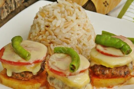 Fırında Kaşarlı Köfte Ve Patates Yapılışı : Köfte için; Derin bir kaba 300 gr kıyma koyun. Üzerine 1 adet yumurta kırın. Ardından 1 adet rendelenmiş soğan, 2 yemek kaşığı galeta...